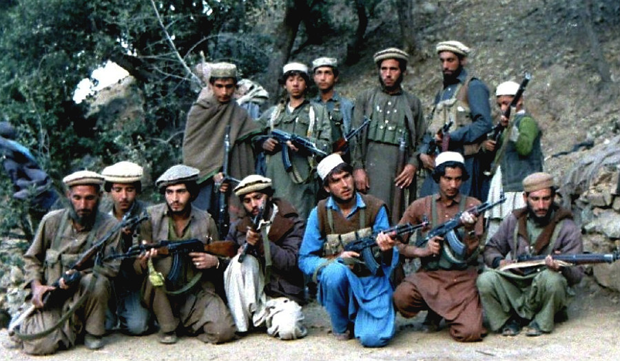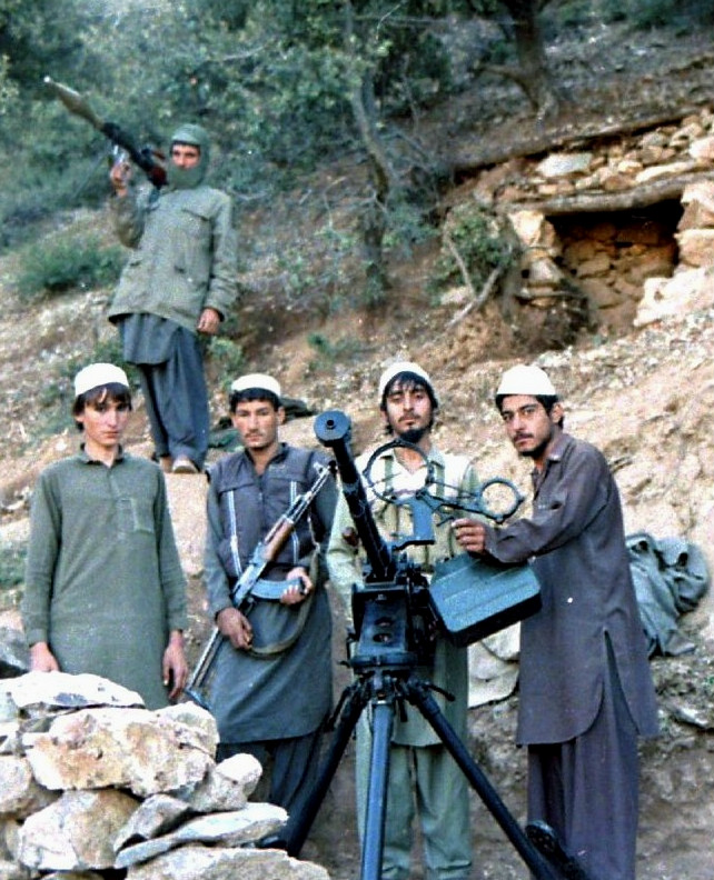 Моджахеди Ісламської партії Афганістану (відламу польового командира Юнуса Халіса), 1987 рік. Більшість із "калашами", у двох бійців праворуч - британські гвинтівки "Лі Енфілд" першої половини XX-го сторіччя