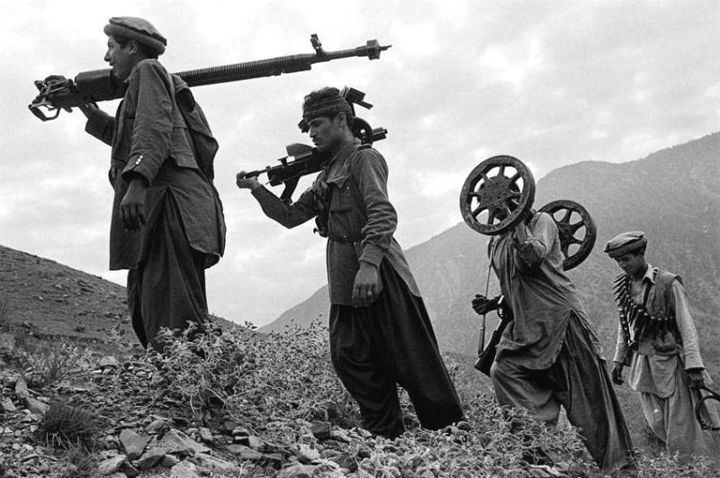 Афганські ісламісти транспортують розібраний ДШК. З виходом радянських військ бойові дії не припинилися - моджахеди пересварилися між собою, в результаті цього конфлікту з'явився "Талібан". Війна в Афганістані триває з 1978 року і донині